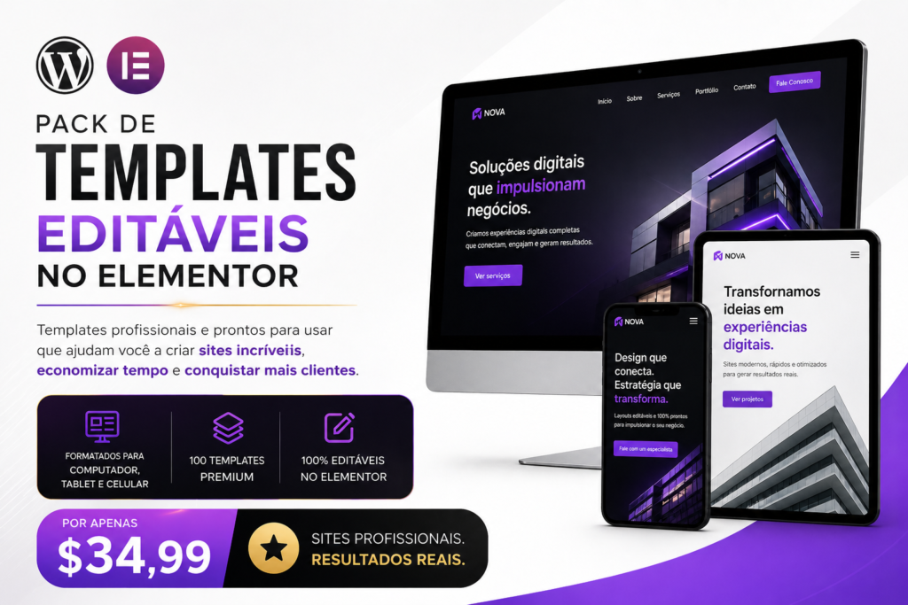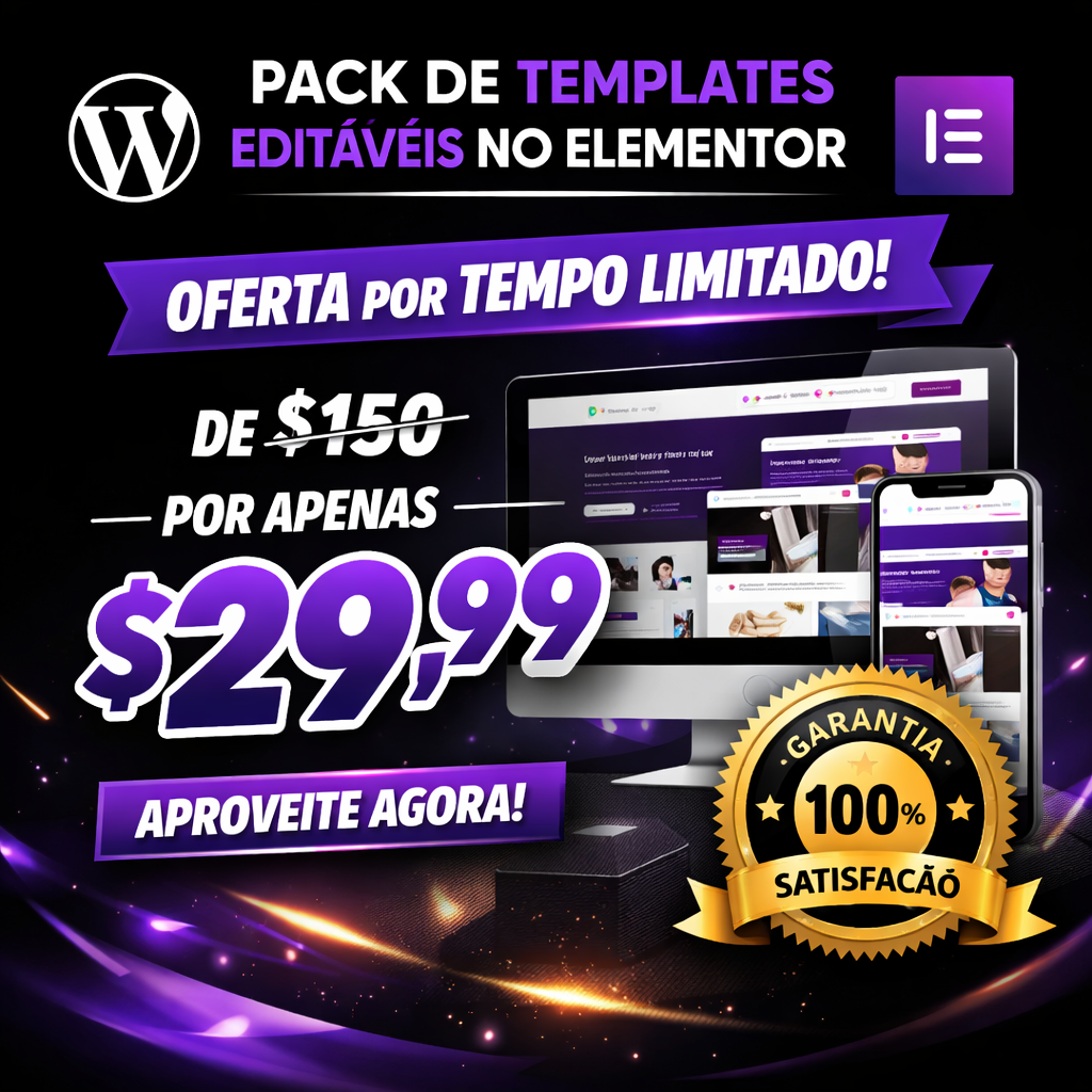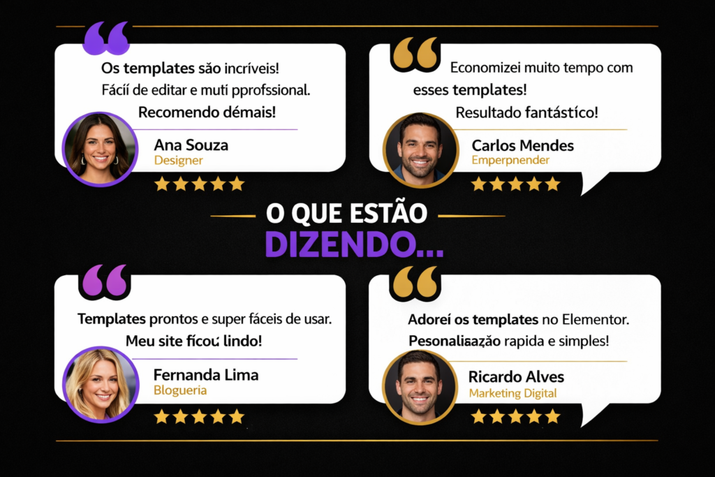 Você receberá os templates em formato .json,aí com poucos cliques é só importar no Elementor e editar do seu jeito!
